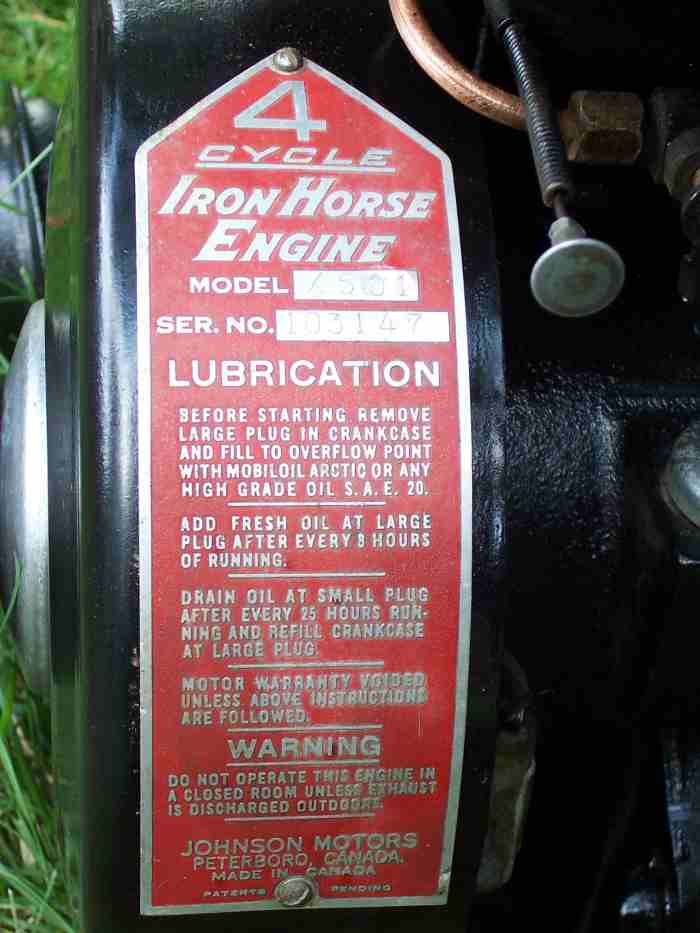 X501 Iron Horse Engine made by Johnson Motors, Peterboro Ontario Canada somewhere in the early 40s.